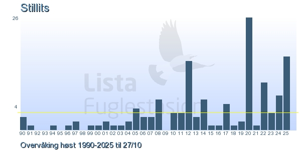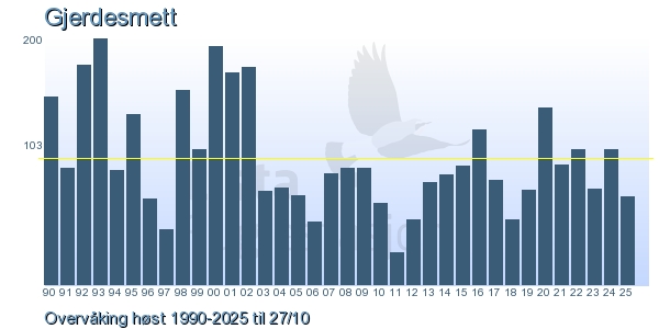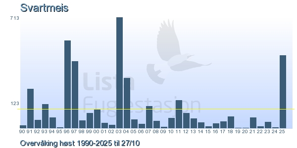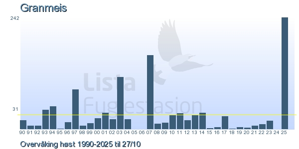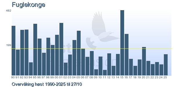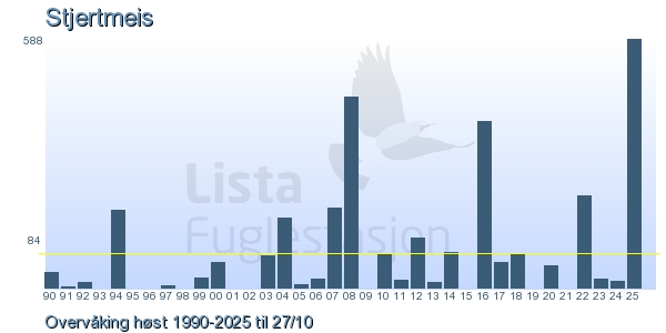 Her ser du resultater av merkeaktiviteten på Lista Fuglestasjon. Du kan velge om du vil ha Dagstall (detaljerte merketall for hver dag), Månedslister (totalsum hver dag for en måned), Sesongdata (status for sesongen), Årslister (artsoversikt for et år) eller Artsliste Lista fuglestasjon (Hele artslisten for merkede fugler på Lista Fuglestasjon).