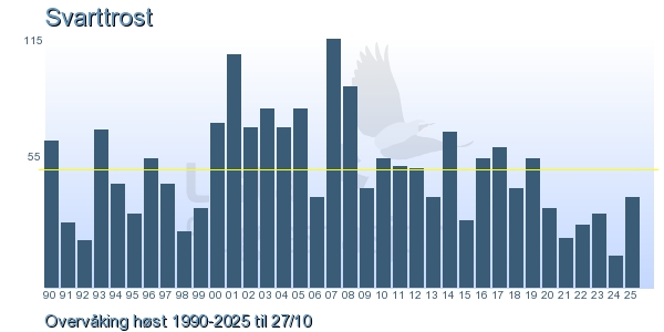 | 13 | Svarttrost | Common Blackbird | Turdus merula | 1 |