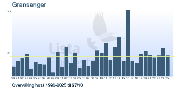 | 7 | Gransanger | Chiffchaff | Phylloscopus collybita | 1 |