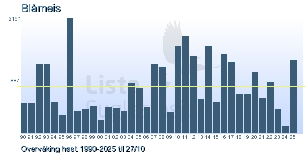 | 5 | Blåmeis | Blue Tit | Cyanistes caeruleus | 48 |