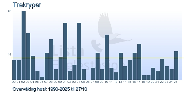 | 12 | Trekryper | Eurasian Treecreeper | Certhia familiaris | 4 |