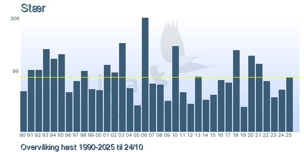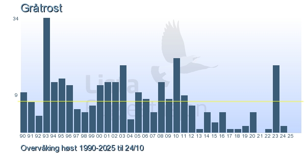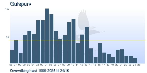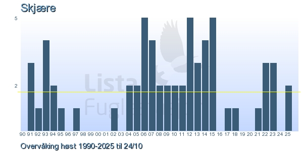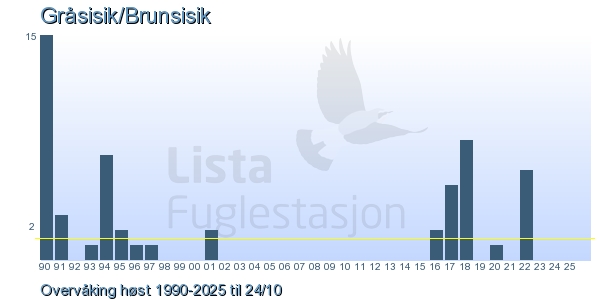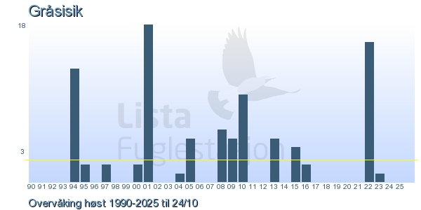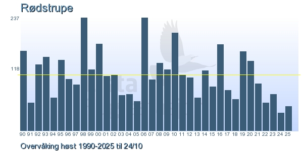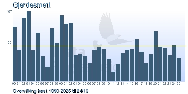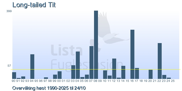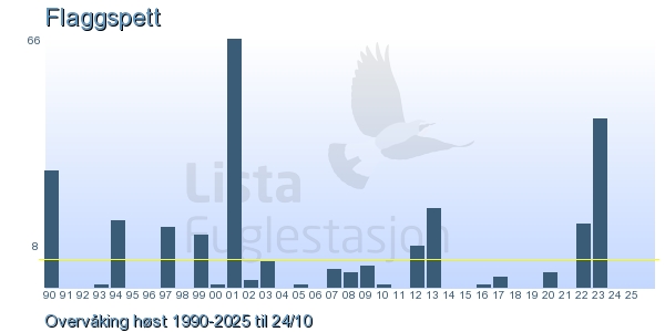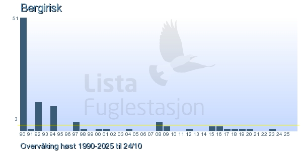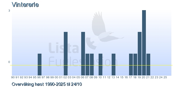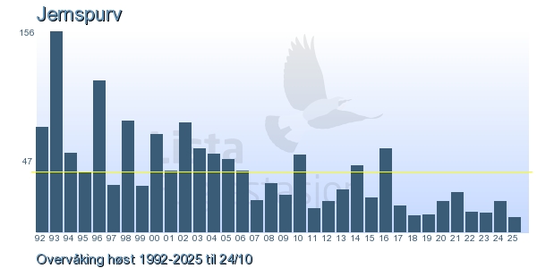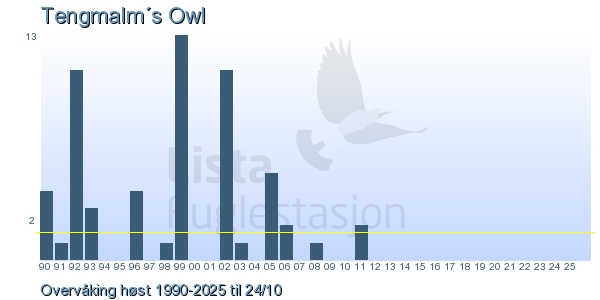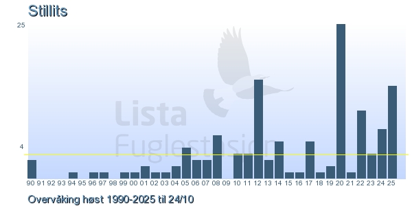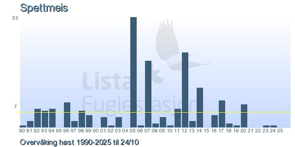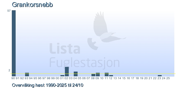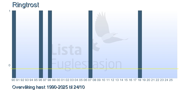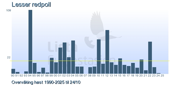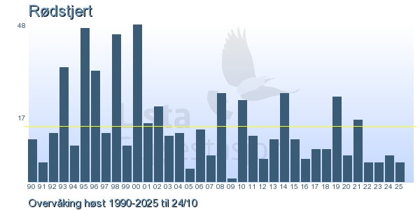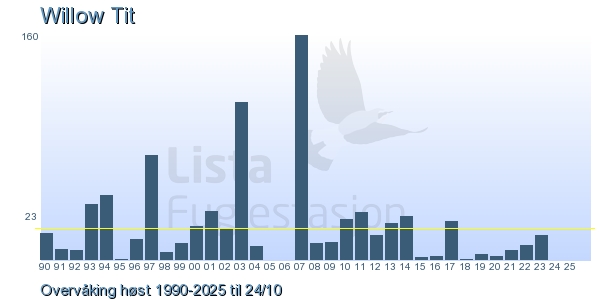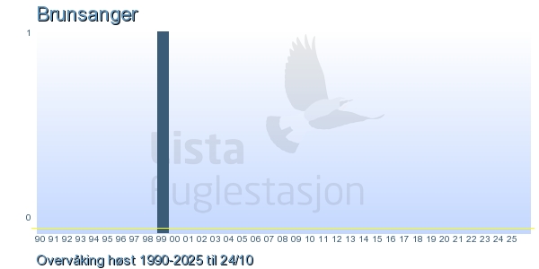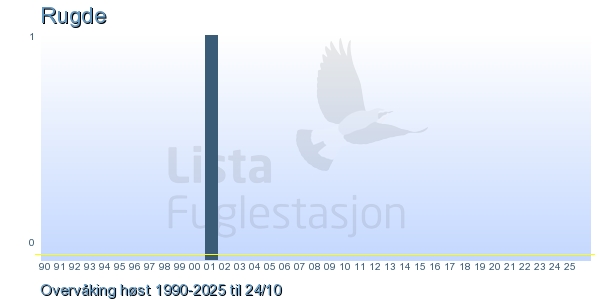 Her ser du resultater av merkeaktiviteten på Lista Fuglestasjon. Du kan velge om du vil ha Dagstall (detaljerte merketall for hver dag), Månedslister (totalsum hver dag for en måned), Sesongdata (status for sesongen), Årslister (artsoversikt for et år) eller Artsliste Lista fuglestasjon (Hele artslisten for merkede fugler på Lista Fuglestasjon).