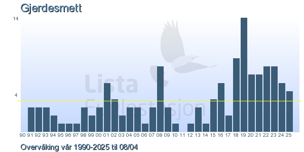Her ser du resultater av merkeaktiviteten på Lista Fuglestasjon. Du kan velge om du vil ha Dagstall (detaljerte merketall for hver dag), Månedslister (totalsum hver dag for en måned), Sesongdata (status for sesongen), Årslister (artsoversikt for et år) eller Artsliste Lista fuglestasjon (Hele artslisten for merkede fugler på Lista Fuglestasjon).