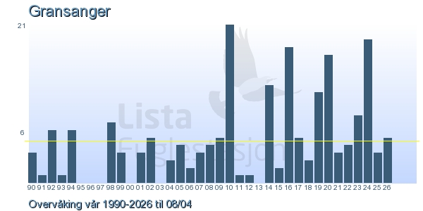 | 1 | Gransanger | Chiffchaff | Phylloscopus collybita | 1 |