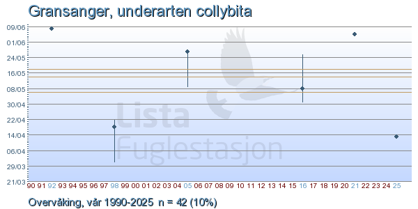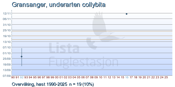 | Gransanger, underarten collybita | Chiffchaff (collybita) | Phylloscopus collybita collybita |