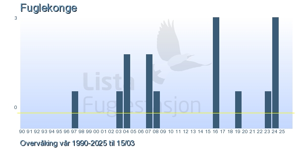 Her ser du resultater av merkeaktiviteten på Lista Fuglestasjon. Du kan velge om du vil ha Dagstall (detaljerte merketall for hver dag), Månedslister (totalsum hver dag for en måned), Sesongdata (status for sesongen), Årslister (artsoversikt for et år) eller Artsliste Lista fuglestasjon (Hele artslisten for merkede fugler på Lista Fuglestasjon).
