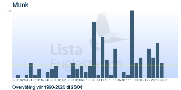 Her ser du resultater av merkeaktiviteten på Lista Fuglestasjon. Du kan velge om du vil ha Dagstall (detaljerte merketall for hver dag), Månedslister (totalsum hver dag for en måned), Sesongdata (status for sesongen), Årslister (artsoversikt for et år) eller Artsliste Lista fuglestasjon (Hele artslisten for merkede fugler på Lista Fuglestasjon).