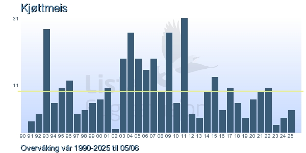 These pages contains the ringing log from Lista Bird Obs. There are several options; Daily log (detailed ringing log for any chosen day), Month log (totals for each day in a month), Season numbers (status for this season), Year list (list of species ringed for any chosen year) or Birdlist Lista Bird Obs. (complete list of species ringed).
