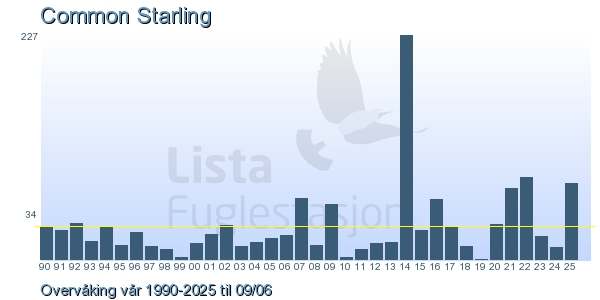 | 1 | Stær | Common Starling | Sturnus vulgaris | 22 |