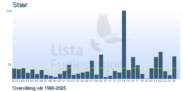 Her ser du resultater av merkeaktiviteten på Lista Fuglestasjon. Du kan velge om du vil ha Dagstall (detaljerte merketall for hver dag), Månedslister (totalsum hver dag for en måned), Sesongdata (status for sesongen), Årslister (artsoversikt for et år) eller Artsliste Lista fuglestasjon (Hele artslisten for merkede fugler på Lista Fuglestasjon).
