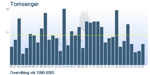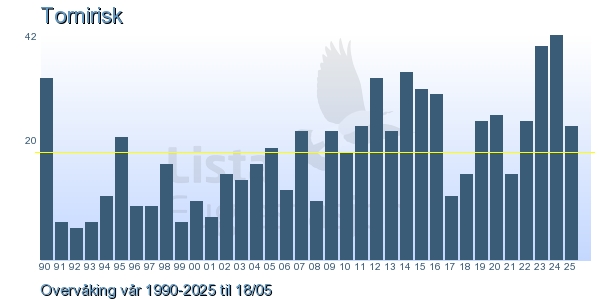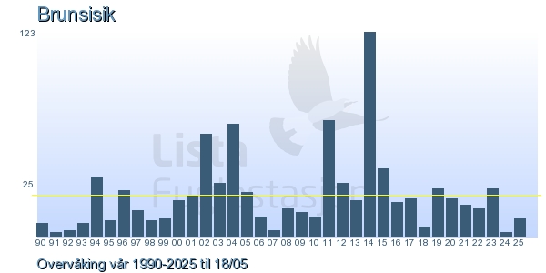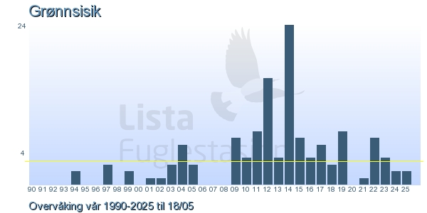 | 7 | Grønnsisik | Eurasian Siskin | Spinus spinus | 4 |