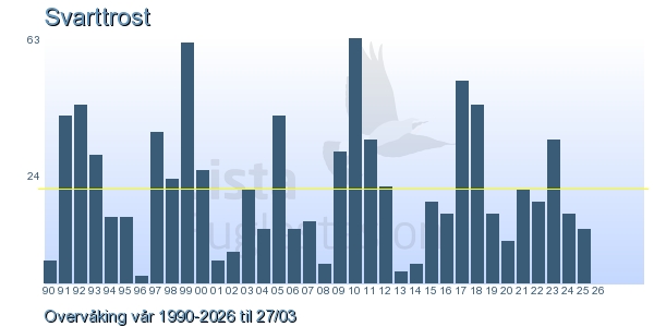 | 1 | Svarttrost | Common Blackbird | Turdus merula | 3 |