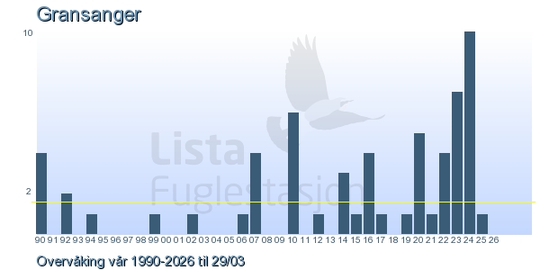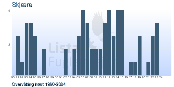 These pages contains the ringing log from Lista Bird Obs. There are several options; Daily log (detailed ringing log for any chosen day), Month log (totals for each day in a month), Season numbers (status for this season), Year list (list of species ringed for any chosen year) or Birdlist Lista Bird Obs. (complete list of species ringed).