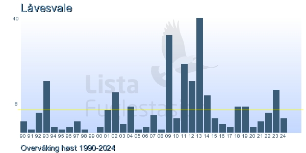 | 3 | Låvesvale | Barn Swallow | Hirundo rustica | 1 |