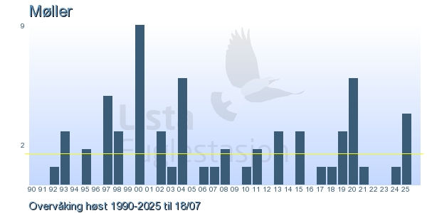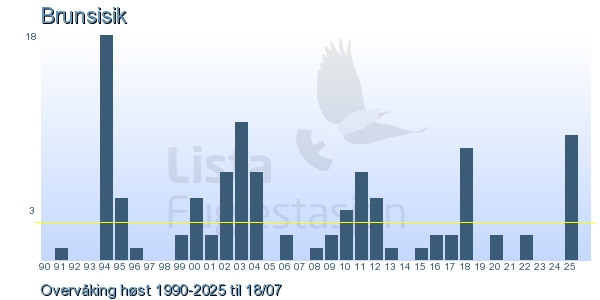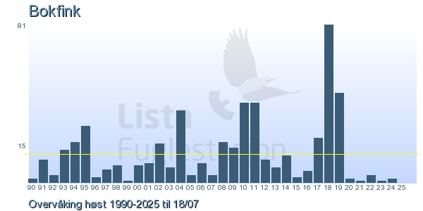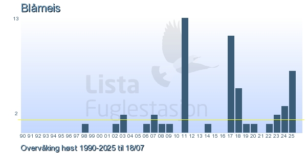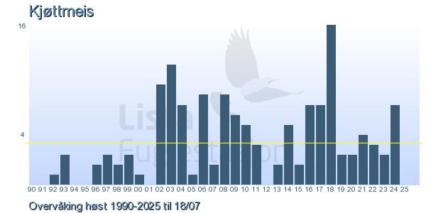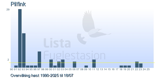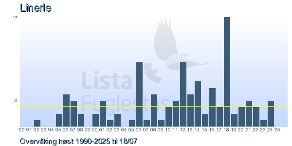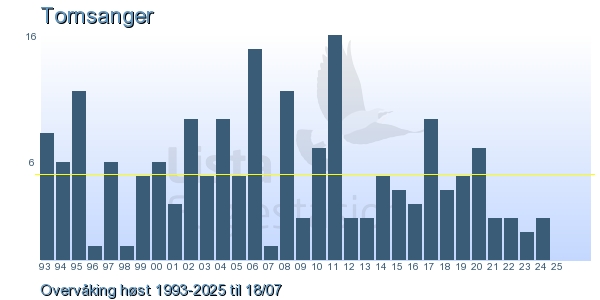 Her ser du resultater av merkeaktiviteten på Lista Fuglestasjon. Du kan velge om du vil ha Dagstall (detaljerte merketall for hver dag), Månedslister (totalsum hver dag for en måned), Sesongdata (status for sesongen), Årslister (artsoversikt for et år) eller Artsliste Lista fuglestasjon (Hele artslisten for merkede fugler på Lista Fuglestasjon).