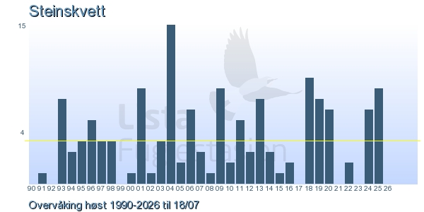 | 11 | Steinskvett | Northern Wheatear | Oenanthe oenanthe | 1 |