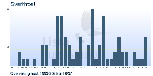 | 9 | Svarttrost | Common Blackbird | Turdus merula | 2 |