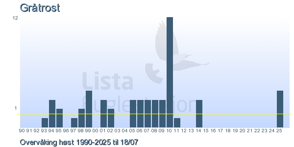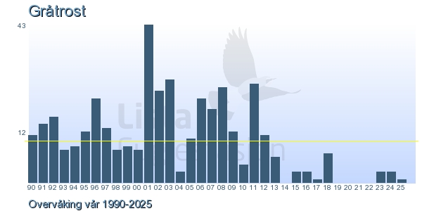 | 10 | Gråtrost | Fieldfare | Turdus pilaris | 2 |