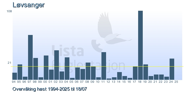 | 4 | Løvsanger | Willow Warbler | Phylloscopus trochilus | 5 |
