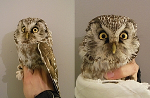 Last week we ringed three Tengmalm’s owls (Aegolius funereus) at Lista during the only night that the weather let us open the nets. At Jomfruland Bird Observatory there has been more owls than usual this spring, and they have already ringed 21 owls, most of them Tengmalm’s.