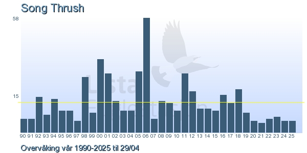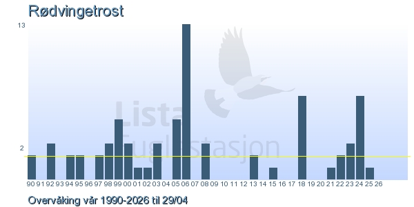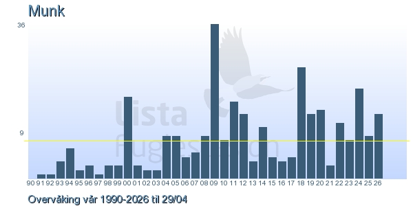 Her ser du resultater av merkeaktiviteten på Lista Fuglestasjon. Du kan velge om du vil ha Dagstall (detaljerte merketall for hver dag), Månedslister (totalsum hver dag for en måned), Sesongdata (status for sesongen), Årslister (artsoversikt for et år) eller Artsliste Lista fuglestasjon (Hele artslisten for merkede fugler på Lista Fuglestasjon).