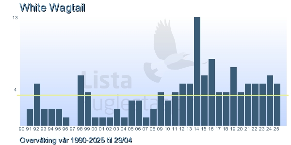 Her ser du resultater av merkeaktiviteten på Lista Fuglestasjon. Du kan velge om du vil ha Dagstall (detaljerte merketall for hver dag), Månedslister (totalsum hver dag for en måned), Sesongdata (status for sesongen), Årslister (artsoversikt for et år) eller Artsliste Lista fuglestasjon (Hele artslisten for merkede fugler på Lista Fuglestasjon).