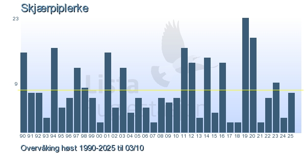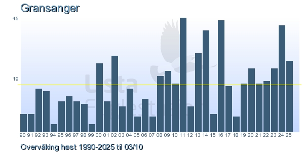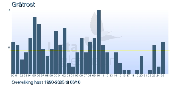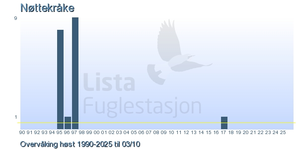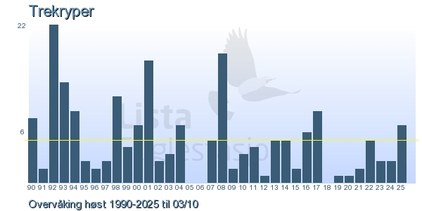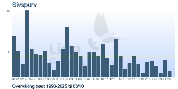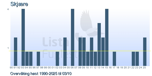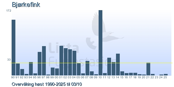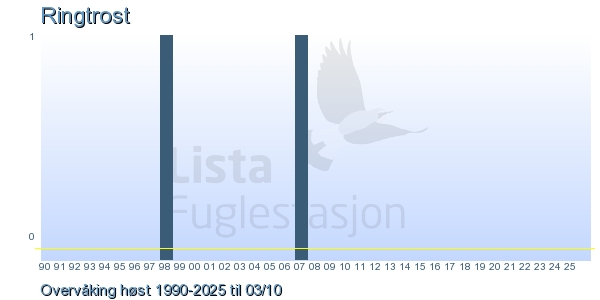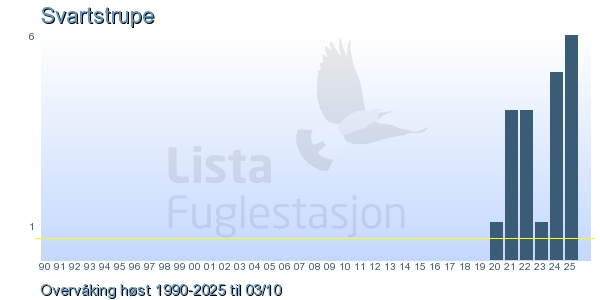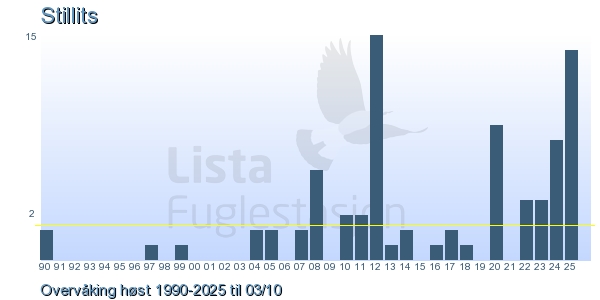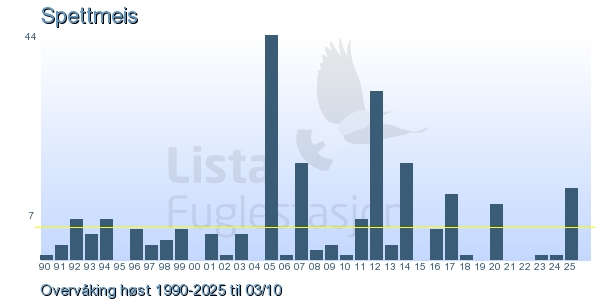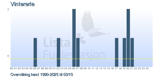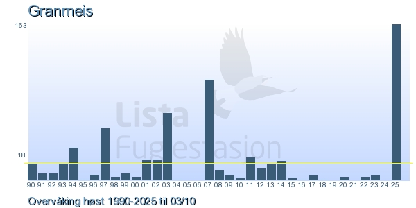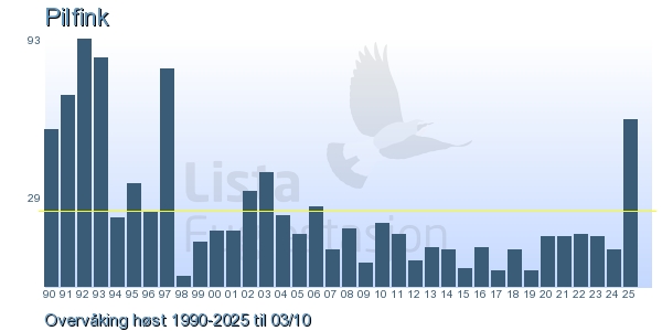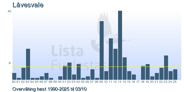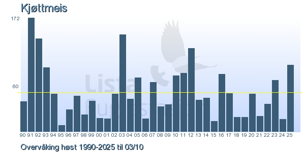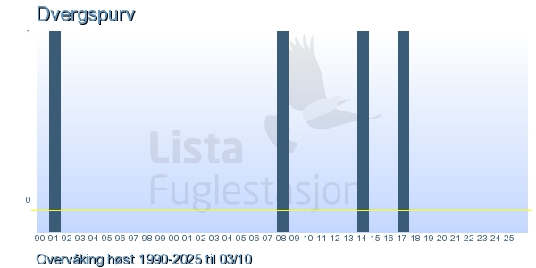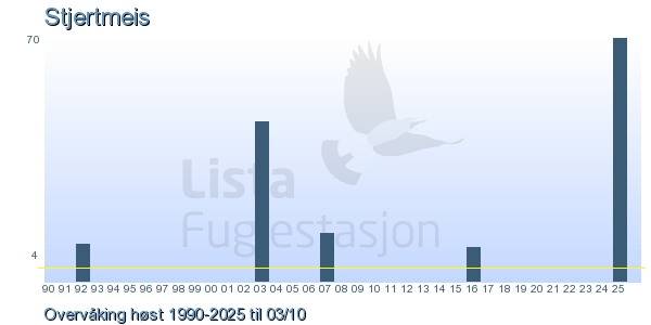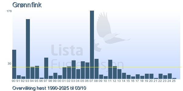 Her ser du resultater av merkeaktiviteten på Lista Fuglestasjon. Du kan velge om du vil ha Dagstall (detaljerte merketall for hver dag), Månedslister (totalsum hver dag for en måned), Sesongdata (status for sesongen), Årslister (artsoversikt for et år) eller Artsliste Lista fuglestasjon (Hele artslisten for merkede fugler på Lista Fuglestasjon).
