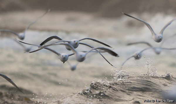 Mew Gull Several seabirds had high migration numbers in spring 2015. This is typical for years with dominant winds from west and north, which leads the birds closer to the coast. For the Mew Gulls the number of migrating birds recorded to the north were 13 200. This is the highest number of birds since 1997.