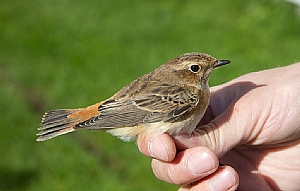 Finally, after more than one year of suspense, we can certainly say that the “mystery bird” caught at Lista Bird Observatory on 18 September 2013 was a male hybrid, result of the breeding between a female Whinchat and a male Common Redstart. The first known hybrid from two different genera within the Muscicapidae family.
