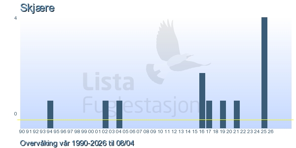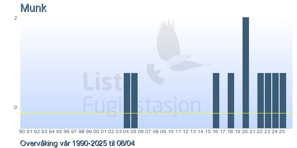 Her ser du resultater av merkeaktiviteten på Lista Fuglestasjon. Du kan velge om du vil ha Dagstall (detaljerte merketall for hver dag), Månedslister (totalsum hver dag for en måned), Sesongdata (status for sesongen), Årslister (artsoversikt for et år) eller Artsliste Lista fuglestasjon (Hele artslisten for merkede fugler på Lista Fuglestasjon).