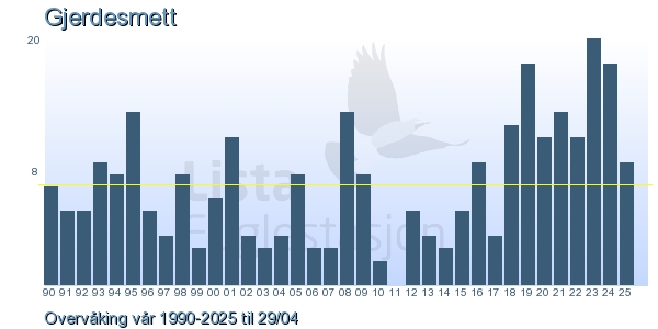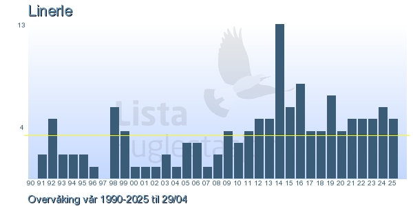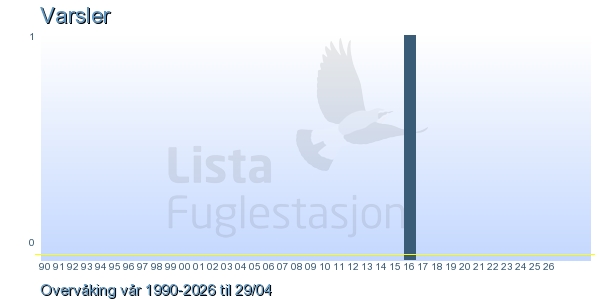 Her ser du resultater av merkeaktiviteten på Lista Fuglestasjon. Du kan velge om du vil ha Dagstall (detaljerte merketall for hver dag), Månedslister (totalsum hver dag for en måned), Sesongdata (status for sesongen), Årslister (artsoversikt for et år) eller Artsliste Lista fuglestasjon (Hele artslisten for merkede fugler på Lista Fuglestasjon).