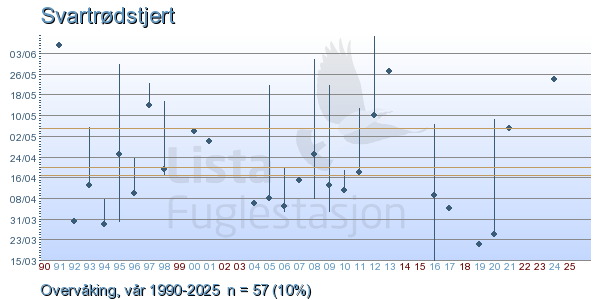 - På de sjeldneste artene kan du klikke på logoen til artsobservasjoner.no for å få alle registrerte observasjoner av denne arten fra artsobservasjoner.no fra Lista Fyr.