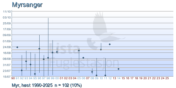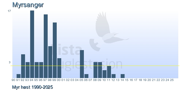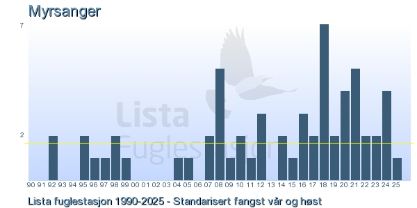 Her ser du resultater av merkeaktiviteten på Lista Fuglestasjon. Du kan velge om du vil ha Dagstall (detaljerte merketall for hver dag), Månedslister (totalsum hver dag for en måned), Sesongdata (status for sesongen), Årslister (artsoversikt for et år) eller Artsliste Lista fuglestasjon (Hele artslisten for merkede fugler på Lista Fuglestasjon).