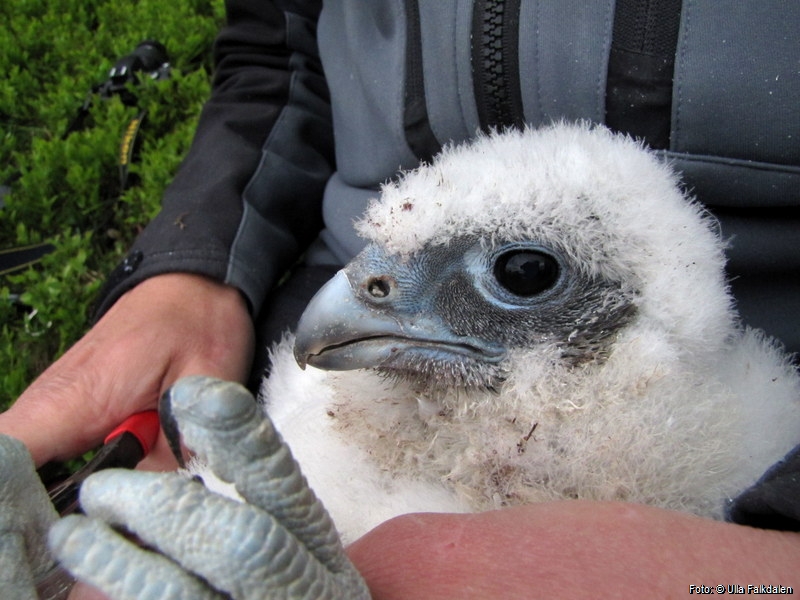 Ulla Falkdalen forteller at jaktfalken på Kviljo ble ringmerket sammen med et annet søsken i reiret, i Vestjämtland. Hun har sendt oss noen bilder av akkurat denne ringmerkingen, se bildene. Det ble ikke bemerket noe feil med hverken denne eller søskenfuglen under ringmerkingen. Kullet var et forholdsvis seint kull som sannsynligvis ble lagt i begynnelsen av mai (normalt legger jaktfalken eggene i første halvdel av april). Jaktfalker blir ikke jaktet på av andre predatorer (utenom kongeørn, og selv dette skjer sjelden), så det er mulig at fuglen på Kviljo kan ha hatt vanskelig for å finne nok mat i vinter, eller den kan ha vært syk. Det ble bemerket av observatører at fuglen ikke var like sky som den normalt ville vært, noe som kan tyde på at den var utmattet eller syk.