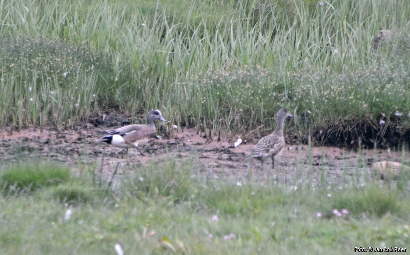 Amerikablesand Den aller siste sjeldenheten i Vågsvollvåien, en Amerikablesand hann, muligens i par med en hunn av samme art. Dokumentasjonsbilde tatt gjennom teleskop fra haugen på Fyrsiden.