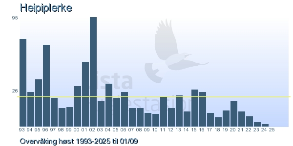 | 4 | Heipiplerke | Meadow Pipit | Anthus pratensis | 5 |