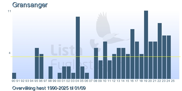 | 1 | Gransanger | Chiffchaff | Phylloscopus collybita | 1 |