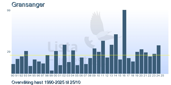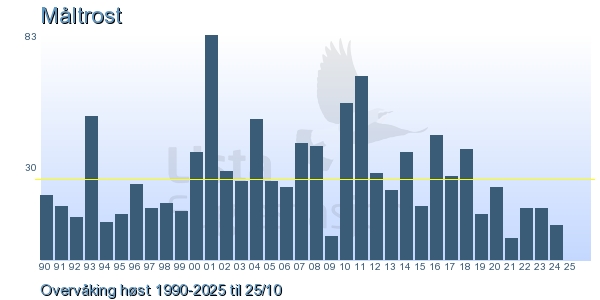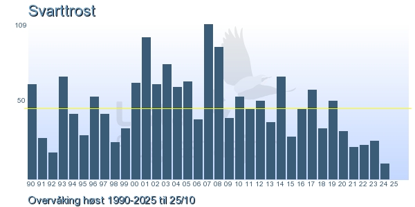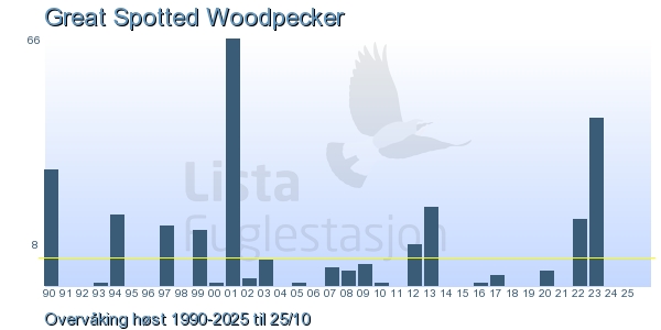 These pages contains the ringing log from Lista Bird Obs. There are several options; Daily log (detailed ringing log for any chosen day), Month log (totals for each day in a month), Season numbers (status for this season), Year list (list of species ringed for any chosen year) or Birdlist Lista Bird Obs. (complete list of species ringed).