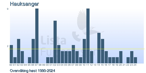 | 4 | Hauksanger | Barred Warbler | Curruca nisoria | 1 |