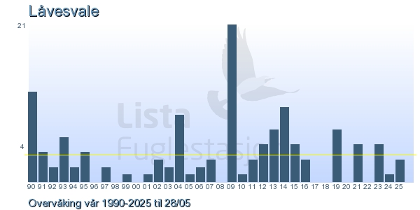 | 1 | Låvesvale | Barn Swallow | Hirundo rustica | 1 |