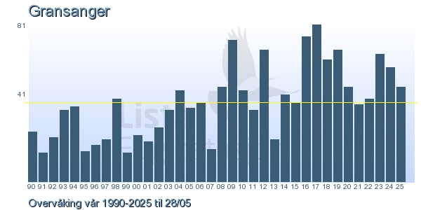 | 3 | Gransanger | Chiffchaff | Phylloscopus collybita | 2 |