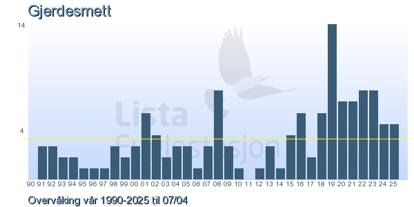 | 3 | Gjerdesmett | Eurasian Wren | Troglodytes troglodytes | 1 |