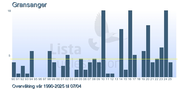 | 1 | Gransanger | Chiffchaff | Phylloscopus collybita | 1 |