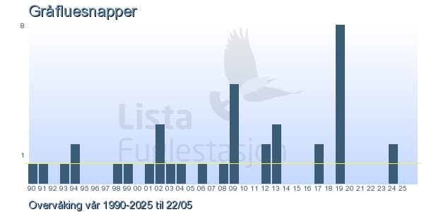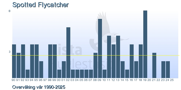 | 4 | Gråfluesnapper | Spotted Flycatcher | Muscicapa striata | 1 |