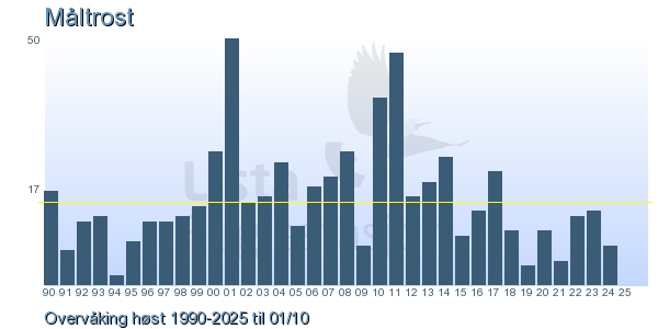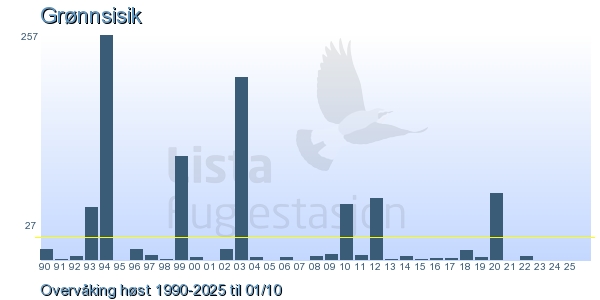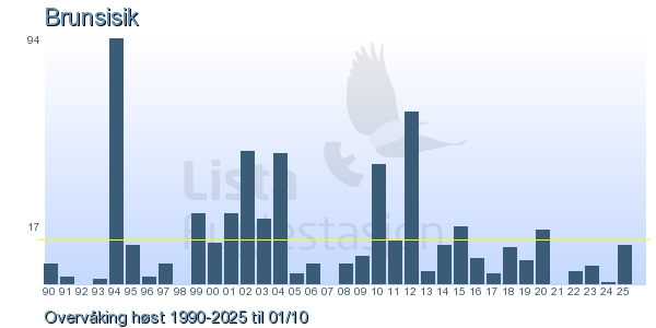 Her ser du resultater av merkeaktiviteten på Lista Fuglestasjon. Du kan velge om du vil ha Dagstall (detaljerte merketall for hver dag), Månedslister (totalsum hver dag for en måned), Sesongdata (status for sesongen), Årslister (artsoversikt for et år) eller Artsliste Lista fuglestasjon (Hele artslisten for merkede fugler på Lista Fuglestasjon).