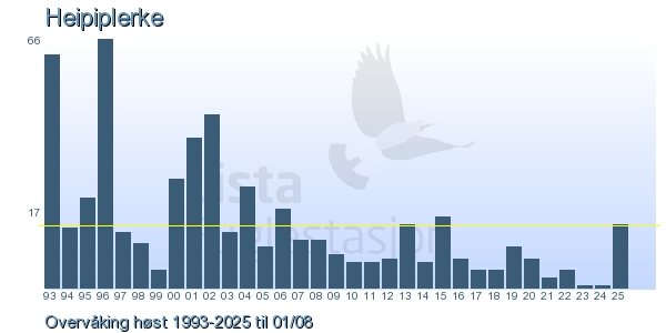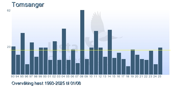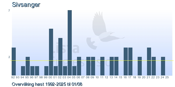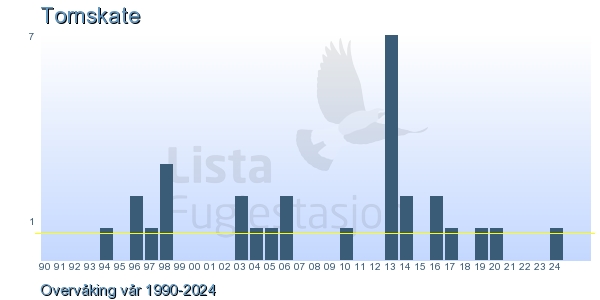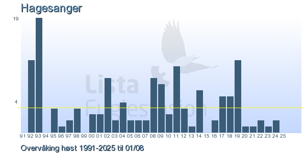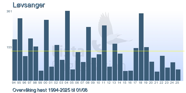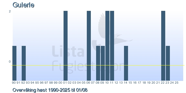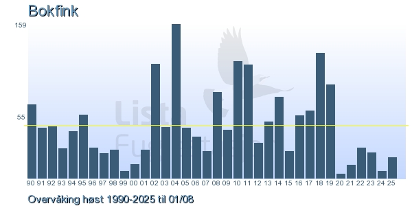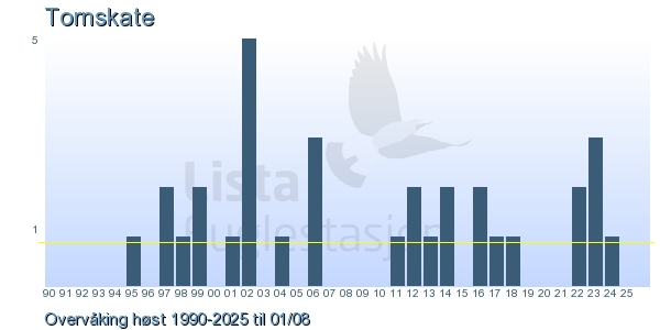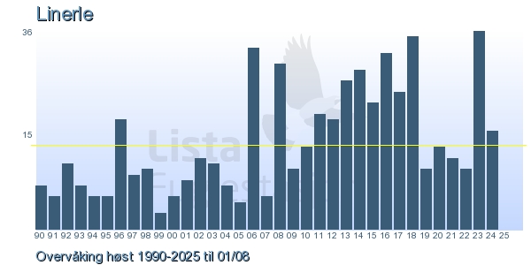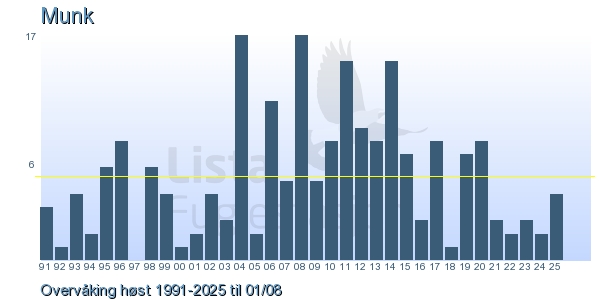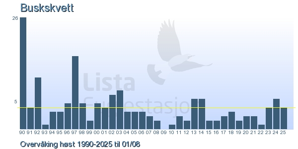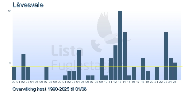 These pages contains the ringing log from Lista Bird Obs. There are several options; Daily log (detailed ringing log for any chosen day), Month log (totals for each day in a month), Season numbers (status for this season), Year list (list of species ringed for any chosen year) or Birdlist Lista Bird Obs. (complete list of species ringed).