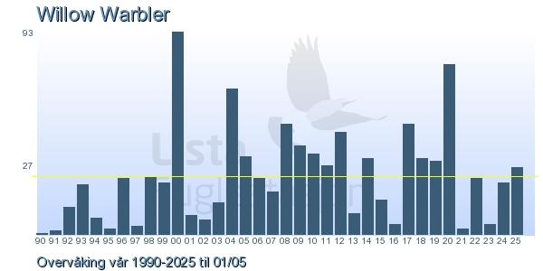 | 1 | Løvsanger | Willow Warbler | Phylloscopus trochilus | 4 |