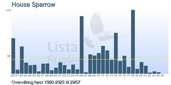 | 8 | Gråspurv | House Sparrow | Passer domesticus | 6 |
