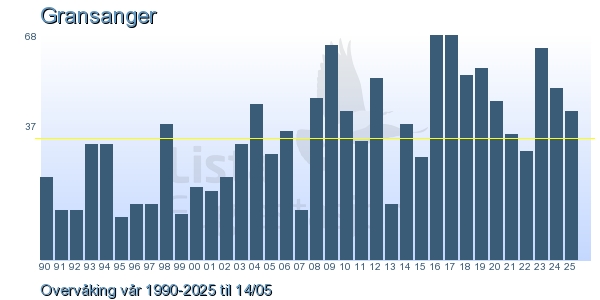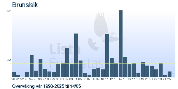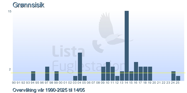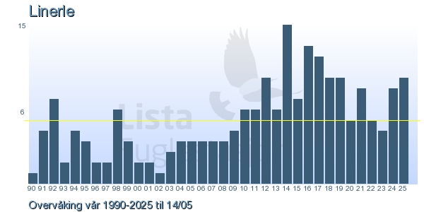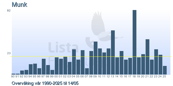 These pages contains the ringing log from Lista Bird Obs. There are several options; Daily log (detailed ringing log for any chosen day), Month log (totals for each day in a month), Season numbers (status for this season), Year list (list of species ringed for any chosen year) or Birdlist Lista Bird Obs. (complete list of species ringed).