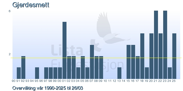 Her ser du resultater av merkeaktiviteten på Lista Fuglestasjon. Du kan velge om du vil ha Dagstall (detaljerte merketall for hver dag), Månedslister (totalsum hver dag for en måned), Sesongdata (status for sesongen), Årslister (artsoversikt for et år) eller Artsliste Lista fuglestasjon (Hele artslisten for merkede fugler på Lista Fuglestasjon).